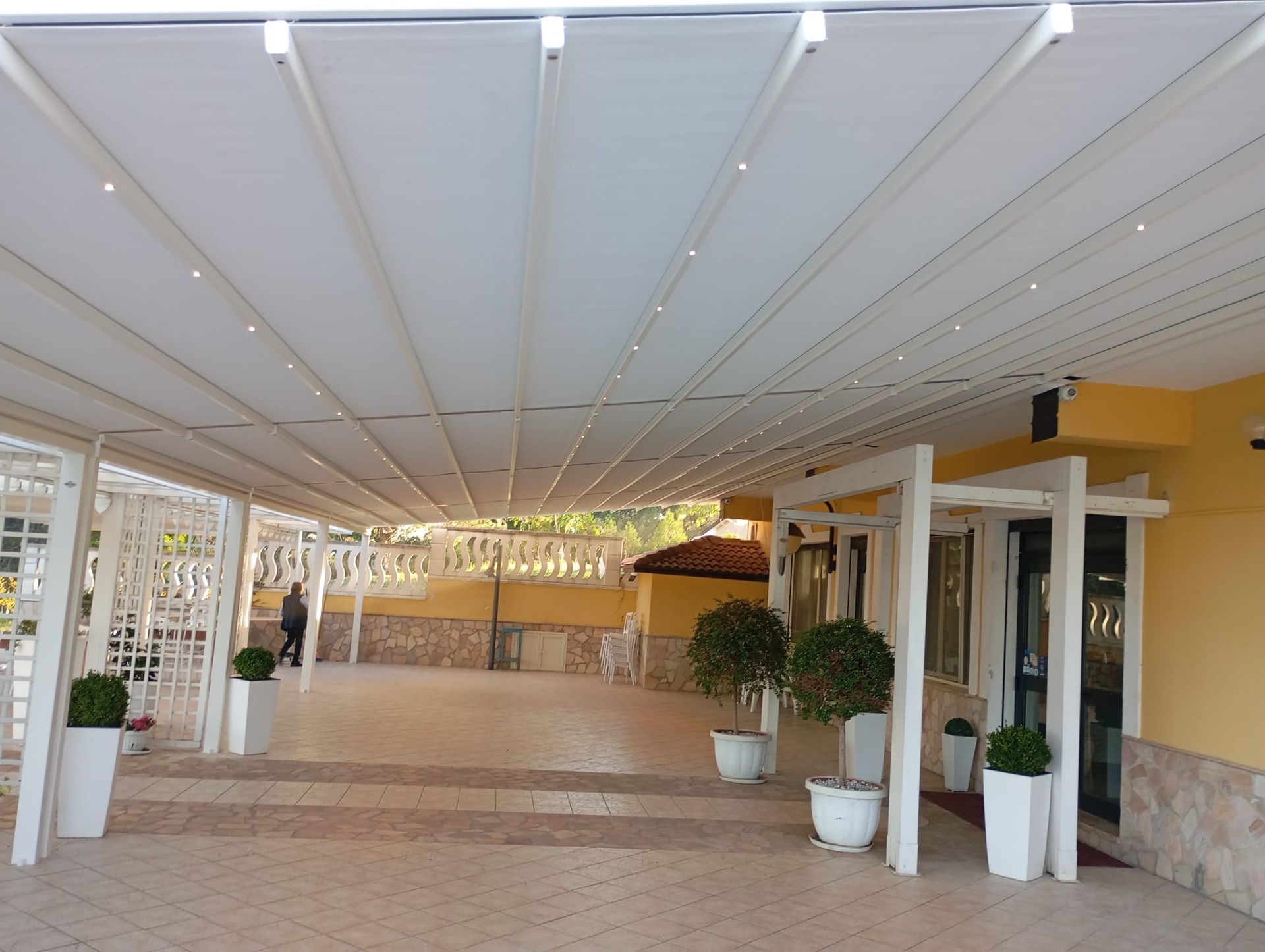 Le tende ad attico vengono progettate e realizzate per essere integrate in strutture fisse di legno o metallo, ottime quindi per proteggere dal sole sia terrazze che attività commerciali con spazi esterni.